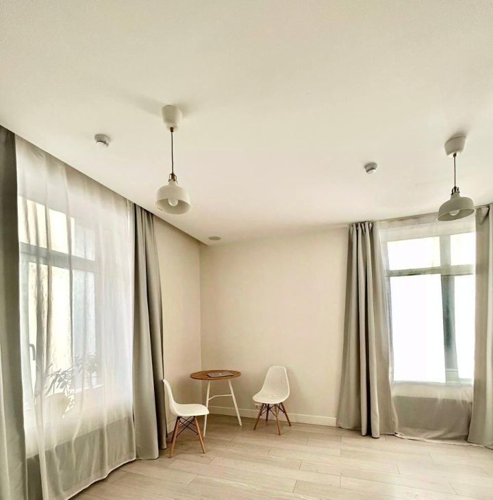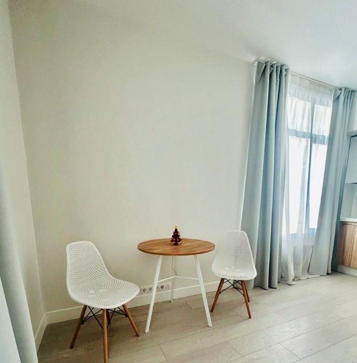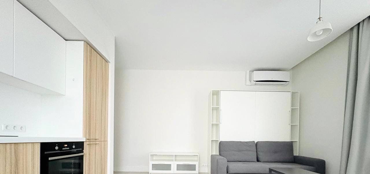 Квартира выполнена в стиле "евроремонт", что позволяет сразу заехать и жить без дополнительных вложений. В студии есть вся необходимая мебель как на кухне, так и в основной комнате. Из техники предусмотрены кондиционер, холодильник, посудомоечная и стиральная машины, что создаёт максимальный комфорт для проживания. Санузел совмещённый, оборудован ванной, окна выходят во двор, поэтому в квартире всегда тихо и уютно.