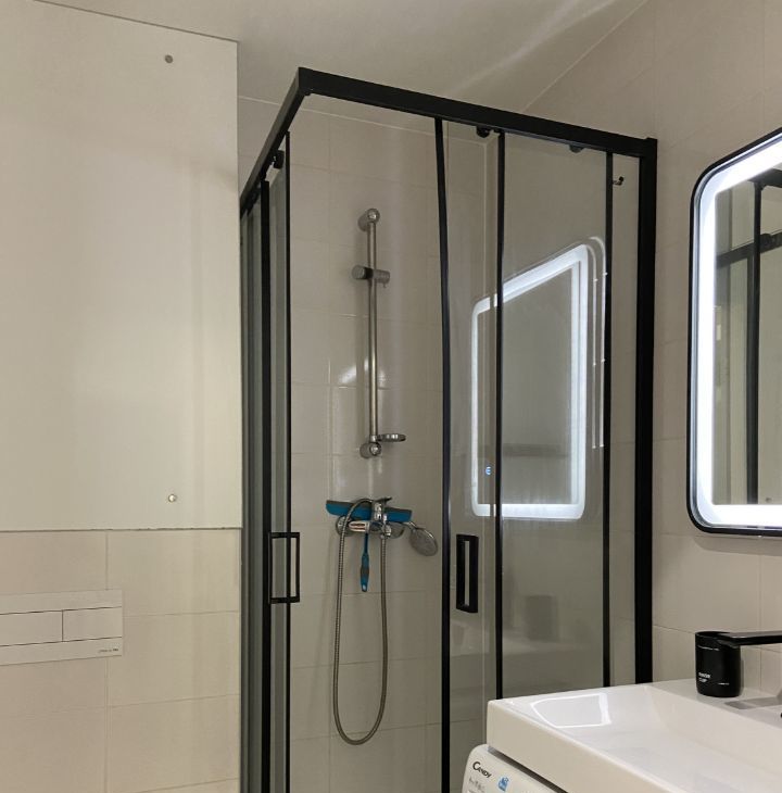 Интерьер студии выполнен в современном стиле, с удобной и функциональной мебелью. Кухня площадью 5 кв. м оснащена всей необходимой техникой: холодильником, посудомоечной машиной и стиральной машиной. В комнате также установлен кондиционер и телевизор. В ванной комнате оборудована душевая кабина, что добавляет комфорта в повседневную жизнь.