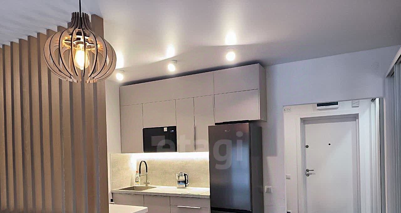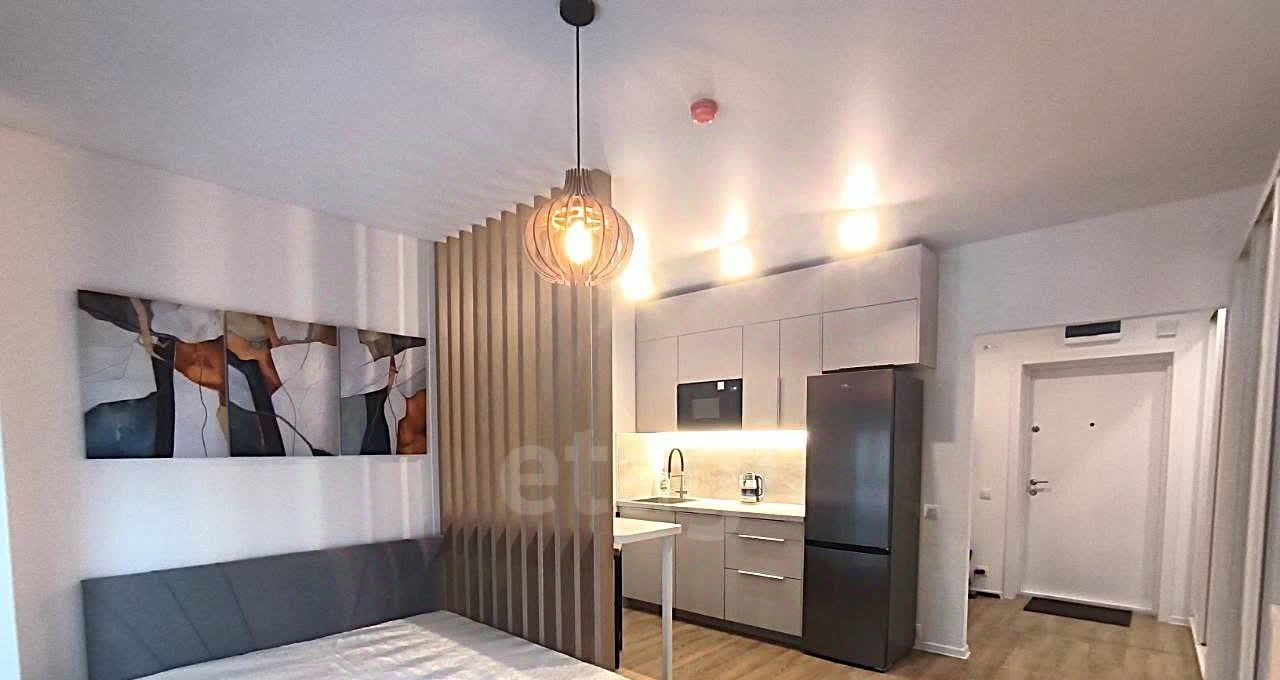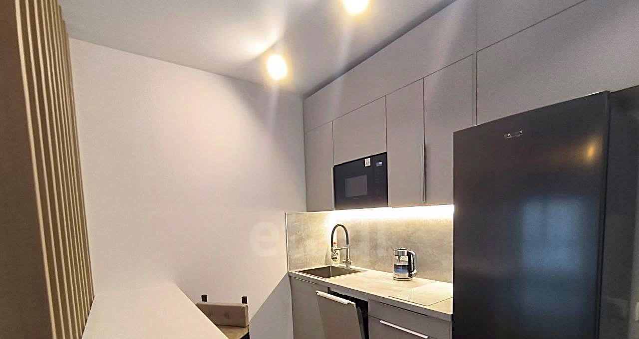 Объект полностью подготовлен для комфортного проживания: выполнен качественный ремонт, установлена новая современная мебель и вся необходимая техника. В кухонной зоне размещены встроенная варочная панель, холодильник, посудомоечная и стиральная машины, микроволновая печь. В помещении также организовано функциональное рабочее место.