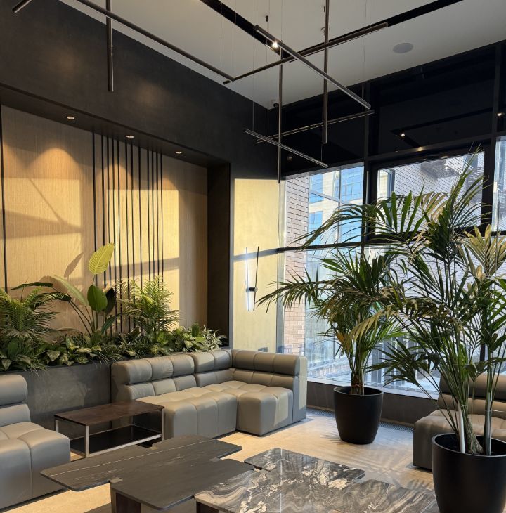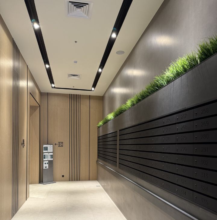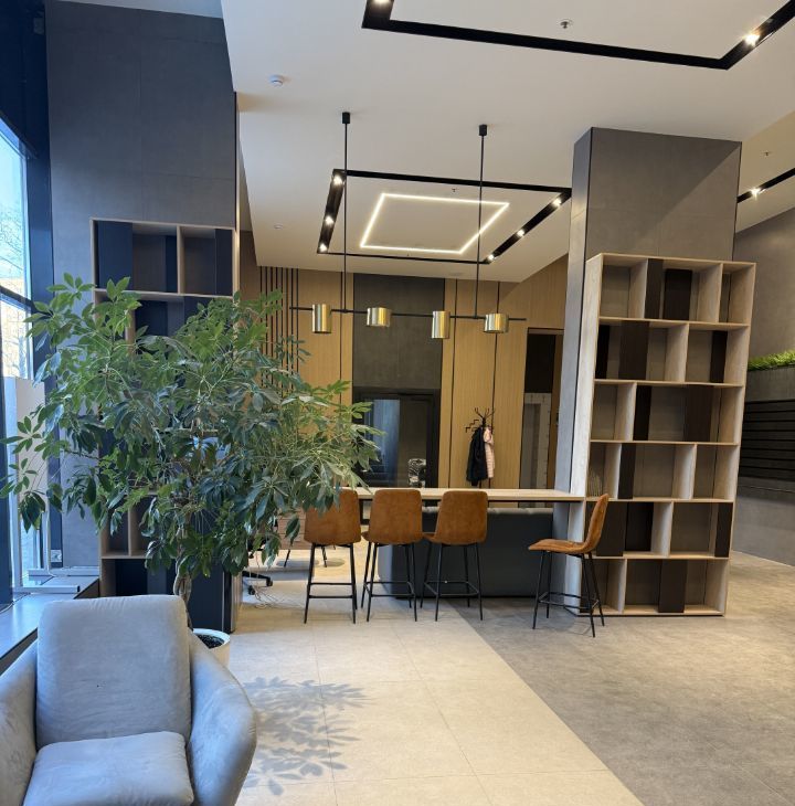 Дом новый, с охраной и подземным паркингом. Стильная зона фойе.