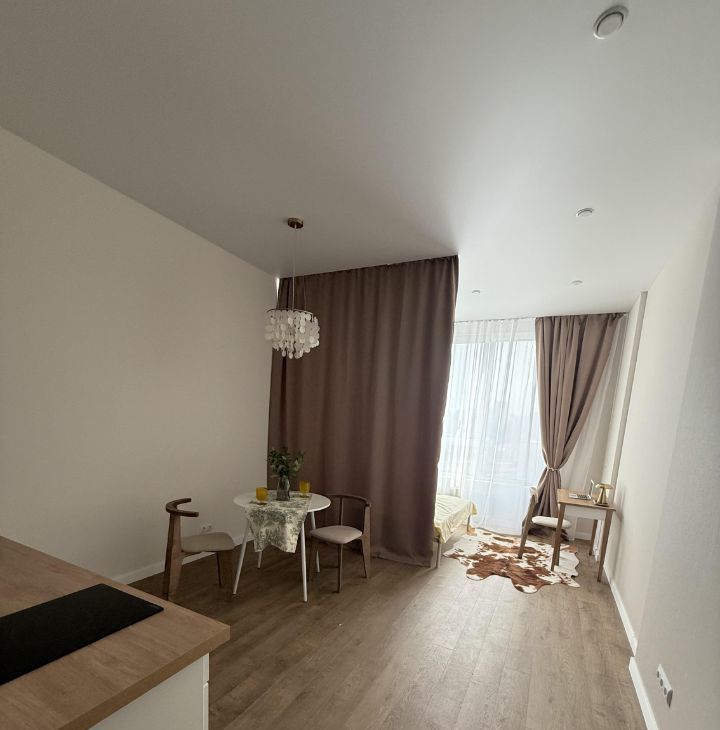 Сдается квартира-студия в новом ЖК, новый ремонт, мебель, техника.