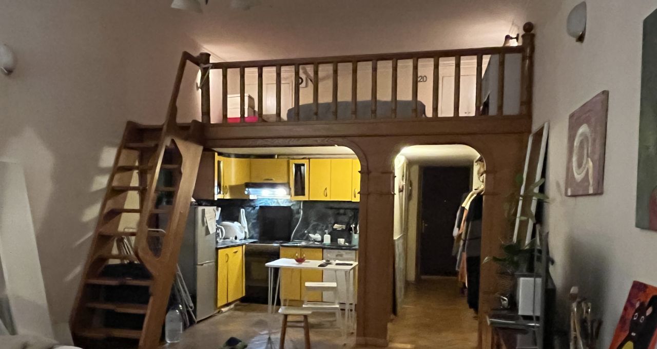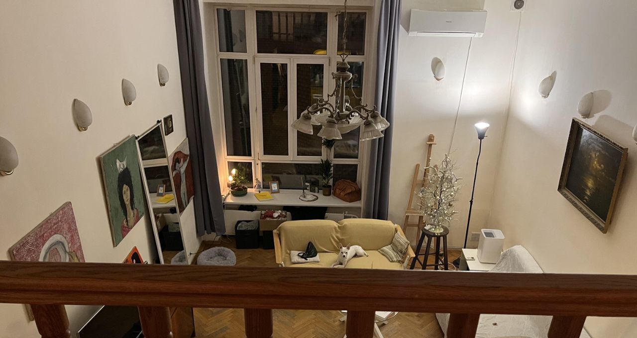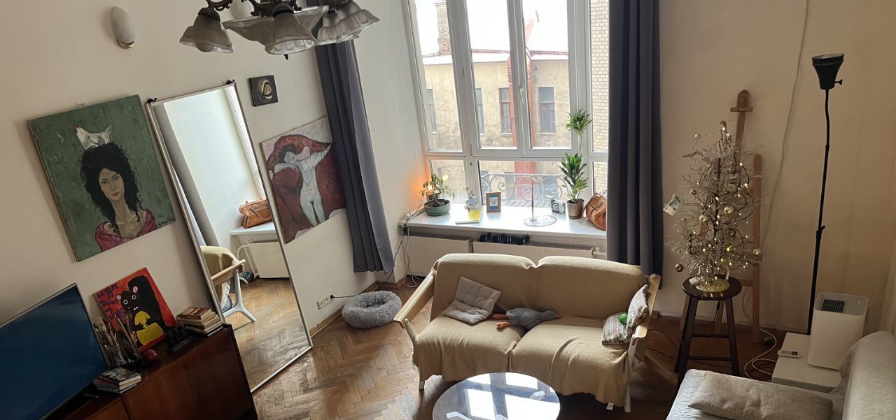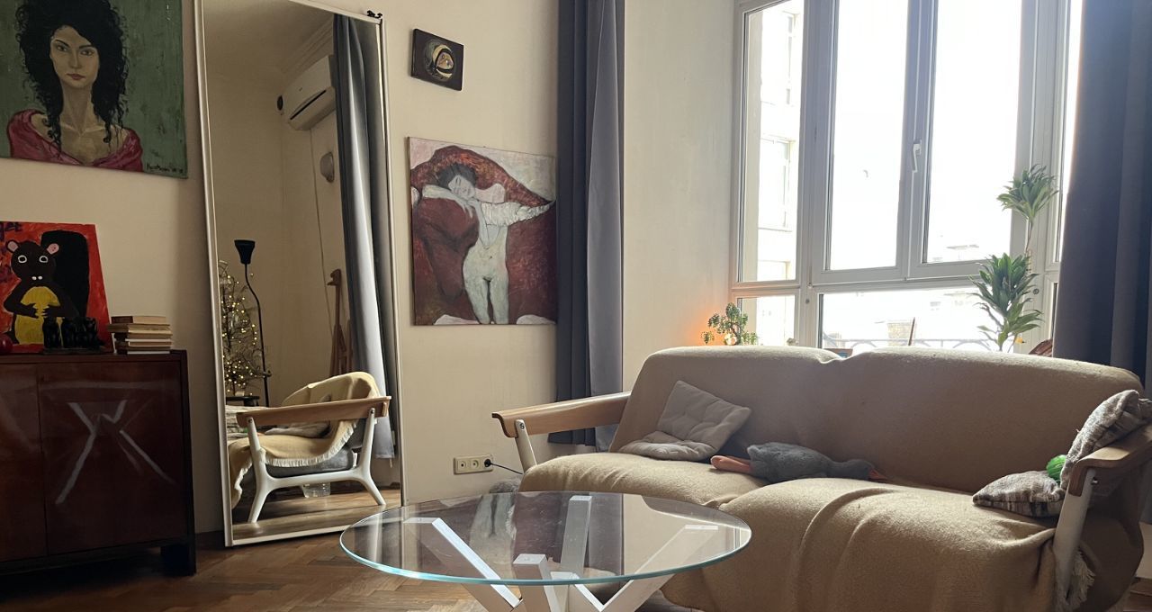 Квартира расположена в историческом доме 1914 года постройки, на 5 этаже 10-этажного кирпичного здания. Общая площадь квартиры составляет 44 кв. м, жилая — 34 кв. м, высота потолков — впечатляющие 4,5 метра. До станции метро "Тверская" всего 3 минуты пешком.
