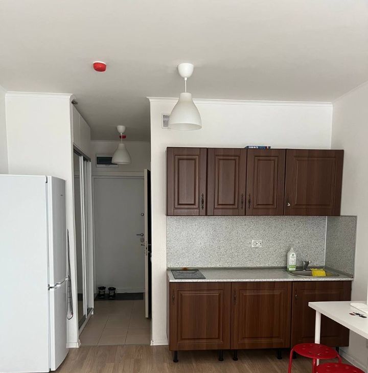 Сдаётся уютная и современная студия в доме 2018 года постройки. Квартира расположена на 5 этаже 17-этажного здания, всего в 7 минутах пешком от метро. Общая площадь квартиры составляет 22.2 кв. м, жилая площадь — 10 кв. м, а кухня занимает 3 кв. м. Высота потолков — 2.65 метра. Окна выходят на улицу, что обеспечивает много естественного света в течение дня.