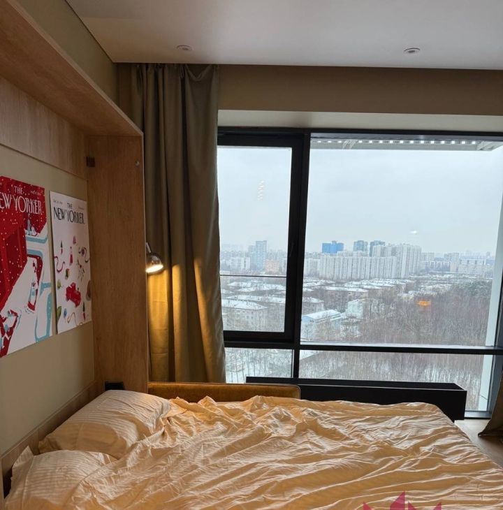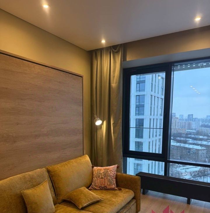Студия 25 м² на 16 этаже с панорамными окнами, откуда открывается прекрасный вид на парк и закаты