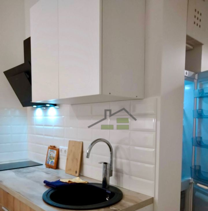 В квартире: диван, вместительные шкаф и комод, кухонный гарнитур, стол со стульями, холодильник, стиральная машина, телевизор с chromcast, кондиционер.