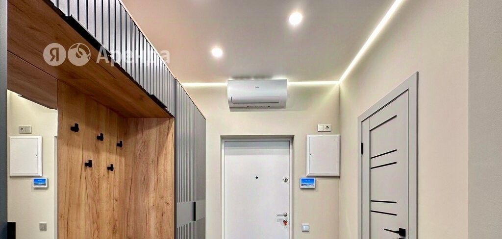 посудомоечная машина, холодильник, микроволновая печь, чайник. В жилой зоне есть smart TV, удобный мягкий уголок, превращающийся в большую спальную площадь, стол с удобными мягкими стульями, сплит-система. Кроме всего прочего, имеется система видеодомофона и стиральная машина в ванной комнате.