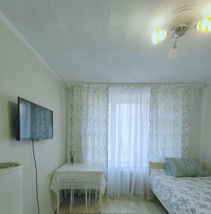 Сдаётся уютная студия на долгий срок в кирпичном доме. Студия идеально подходит для проживания одного человека. Полностью готова для проживания, в комнате: одна спальная кровать, шкаф для одежды, стеллажи, стол+стулья. Из техники имеется: телевизор, холодильник, стиральная машина, электрическая плита. Также имеется посуда.