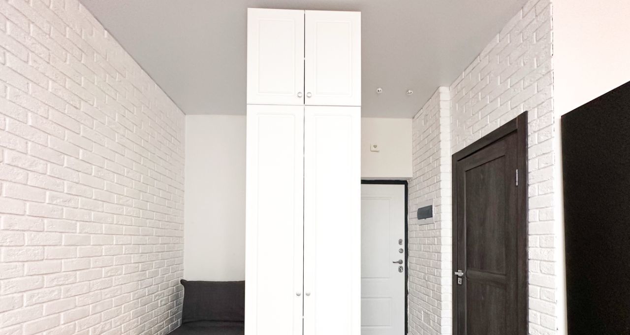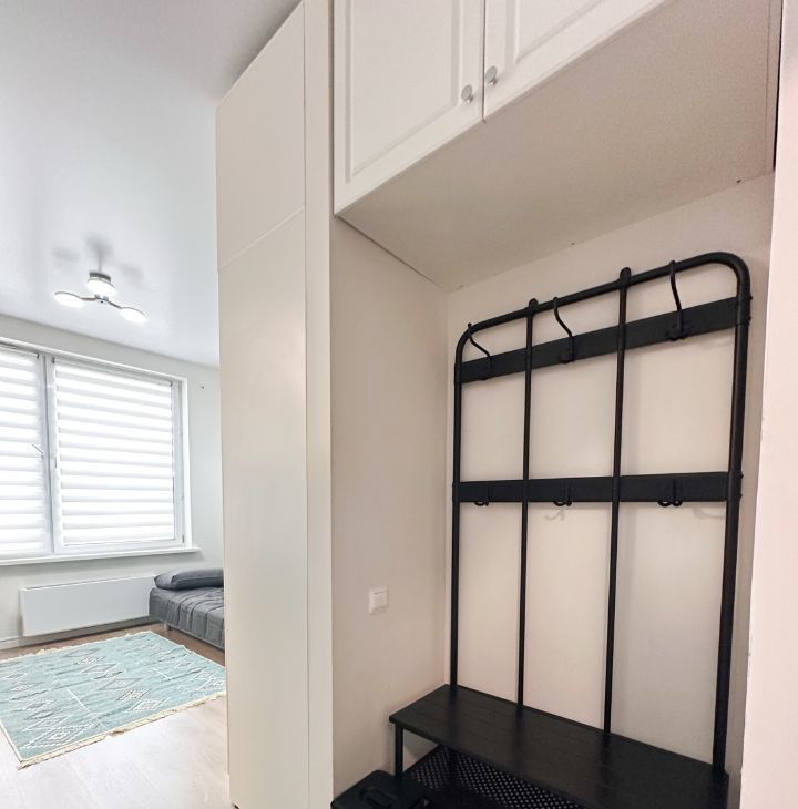 — Прихожая: зеркало, шкаф и вешалка с обувницей — всё, чтобы разместить вещи аккуратно и удобно