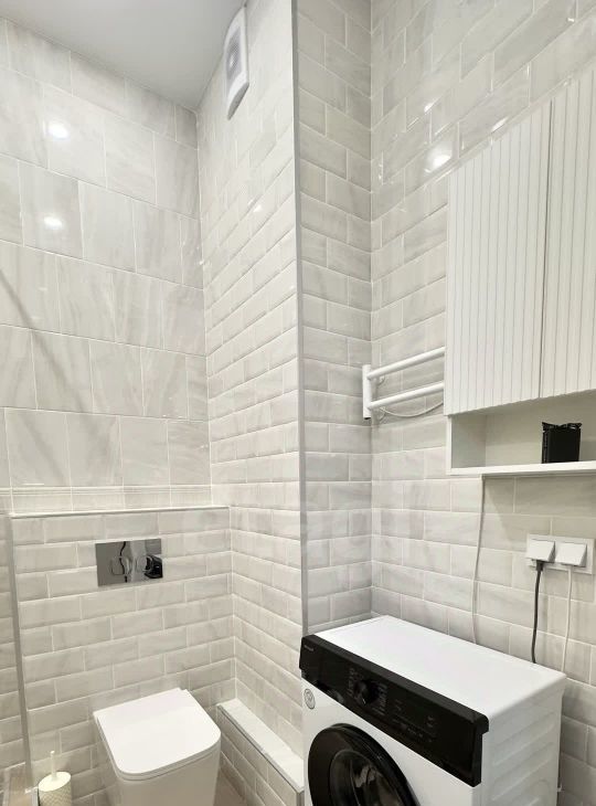 Также установлены холодильник, микроволновая печь, стиральная машина, электрический полотенцесушитель, электрическая плита на две комфорки.