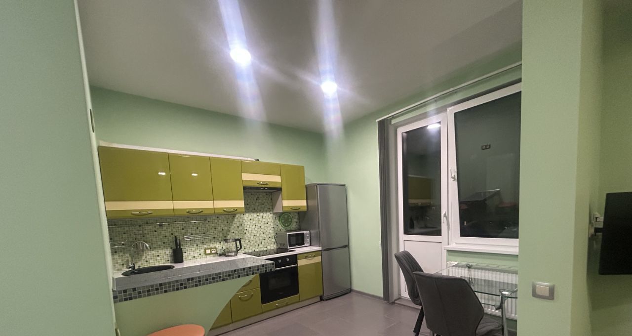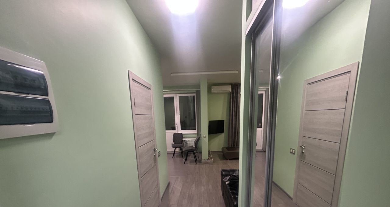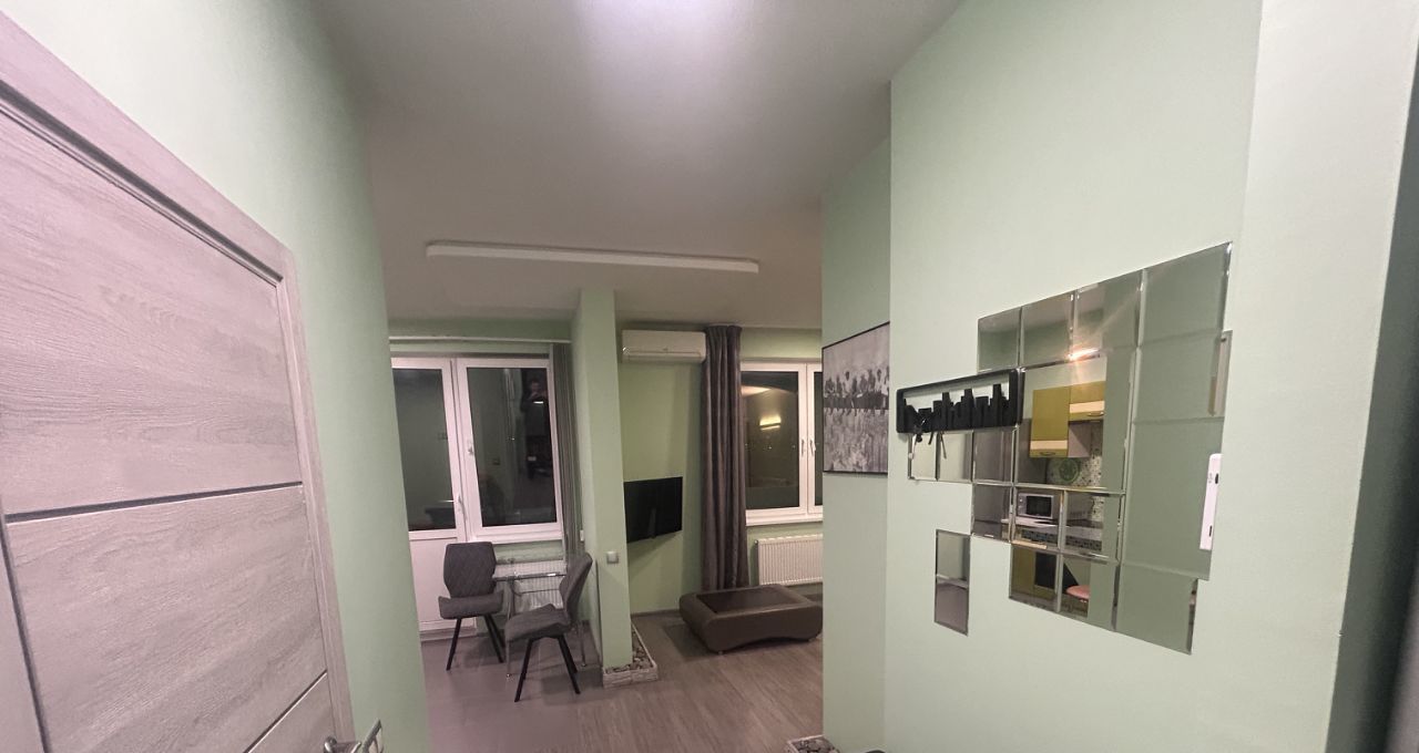 Сдаётся просторная студия в современном доме, расположенном всего в 3 минутах ходьбы от метро "Каховская". Общая площадь квартиры составляет 42 кв. м, из которых 30 кв. м — жилая площадь, а кухня занимает 10 кв. м. Квартира расположена на 8 этаже 24-этажного монолитного дома, построенного в 2018 году. Высота потолков — 2.7 метра, окна выходят во двор, что обеспечивает тишину и уют.