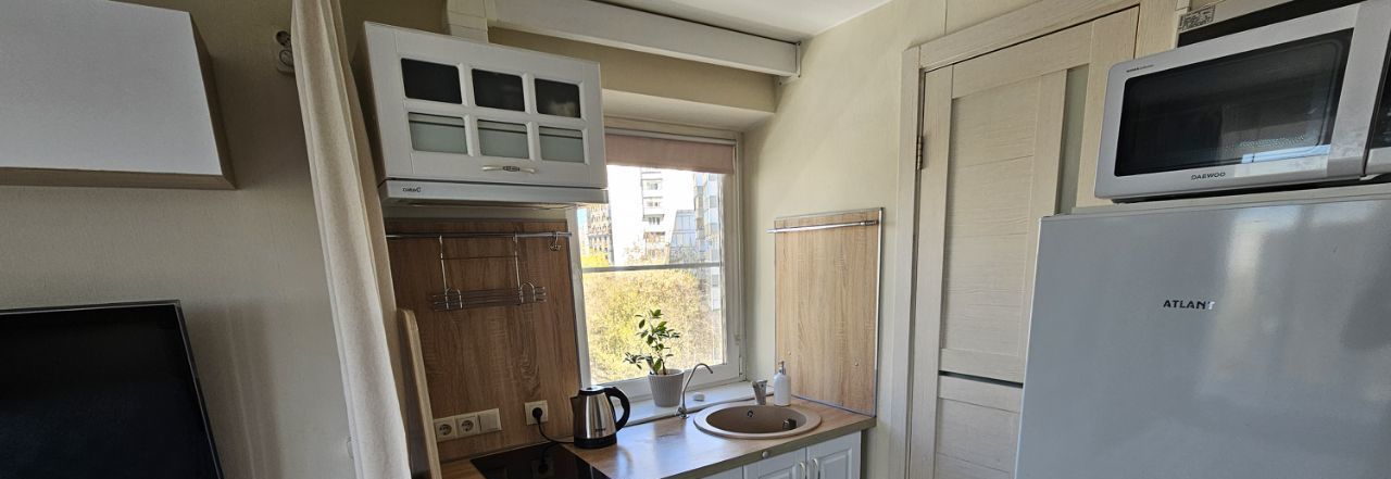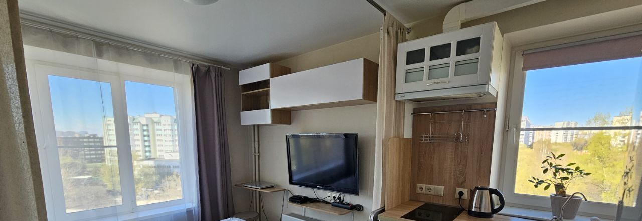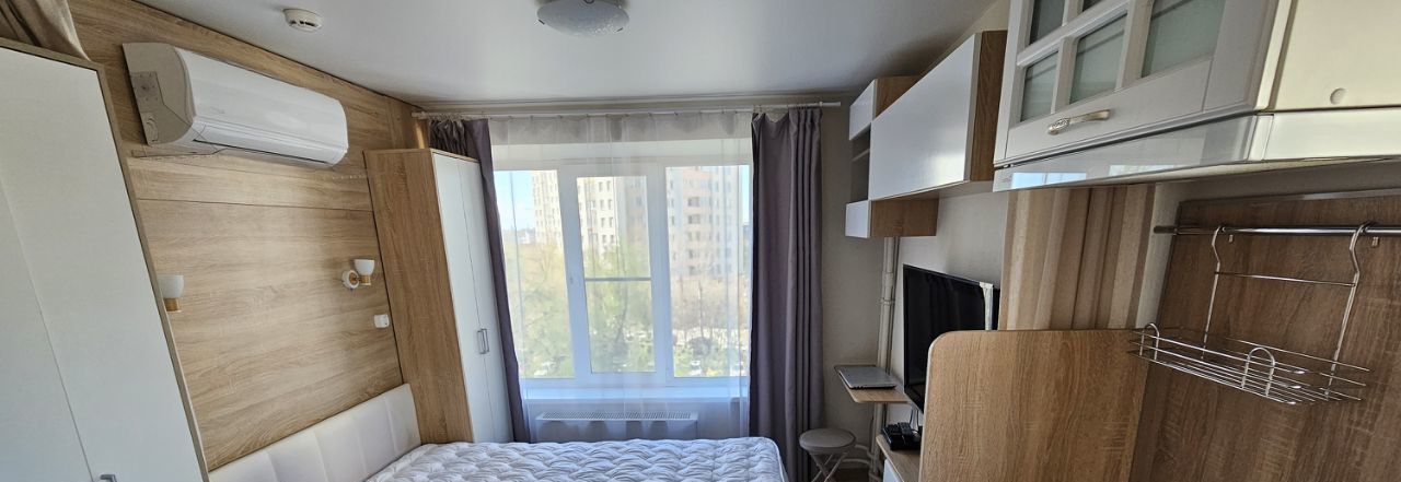 Студия апартаменты в 7 минутах ходьбы от метро со всей необходимой техникой и мебелью сдается на долгий срок от собственника. Кухня с плитой и вытяжкой. Кран для питьевой воды с системой фильтрации, большой холодильник. Кондиционер, двуспальная кровать 1,42 м, матрас ikea hovog. Водонагреватель на период обслуживания городских теплосетей. Маскитные сетки на окнах.в 10 мин пешком парк им. Федорова. Рядом у метро большие торговые центры. Во дворе большая бесплатная парковка. При необходимости возможна временная регистрация.