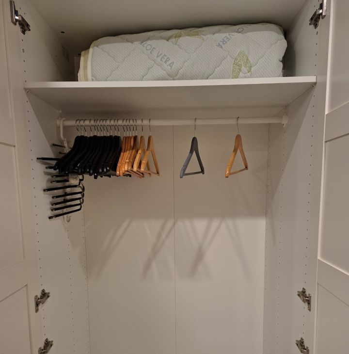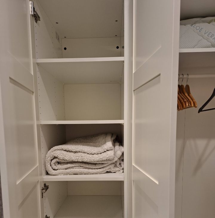 Также имеется всё необходимое для жизни-утюг с гладильной доской, сушилка для белья, пылесос, постельное бельё.