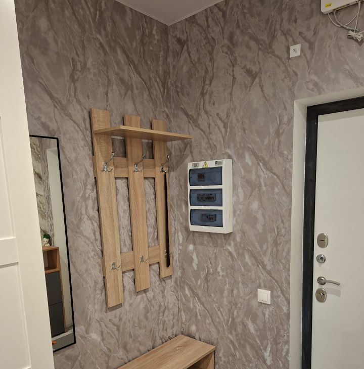 В прихожей имеется вешалка и галошница.