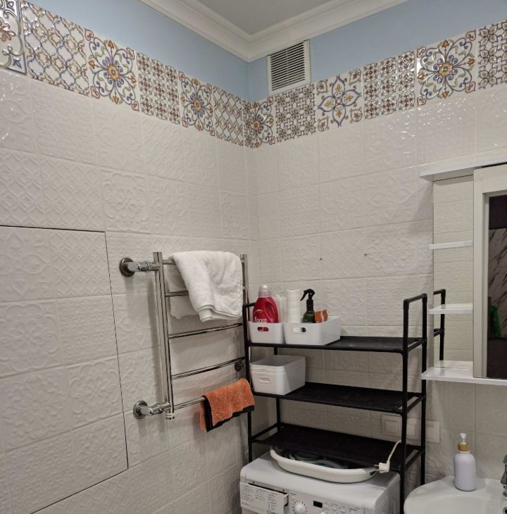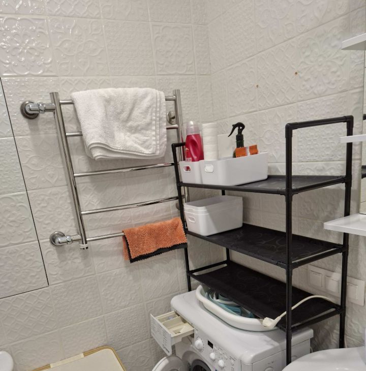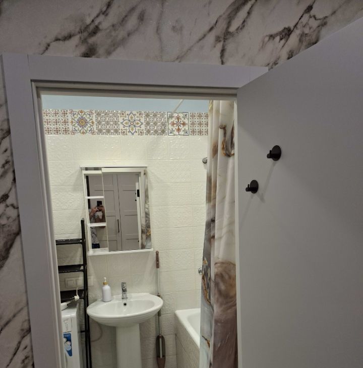 Санузел совмещенный, оснащен современной сантехникой и стиральной машиной.