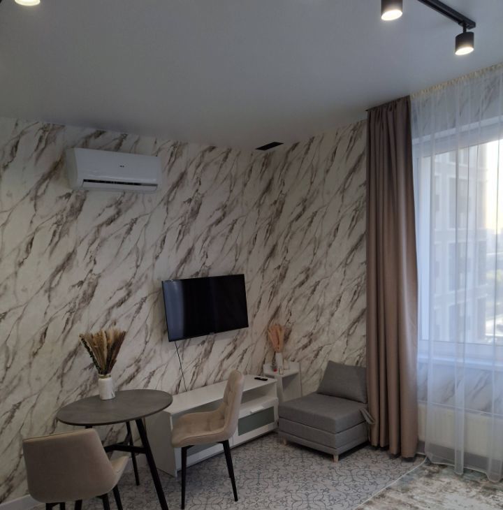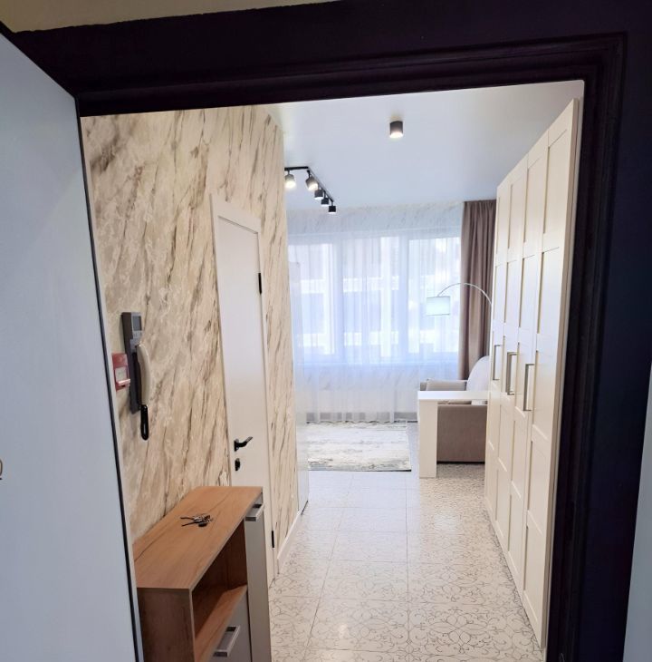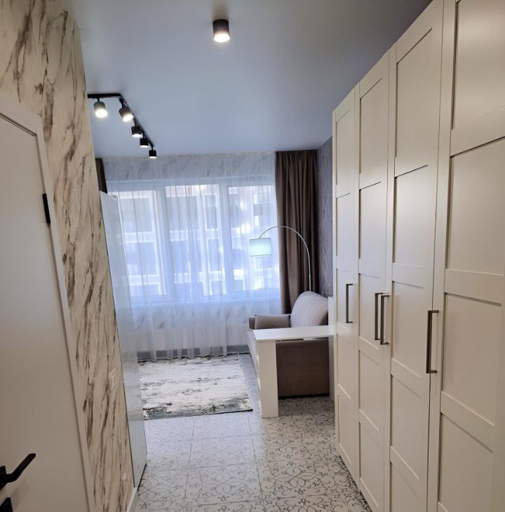 Сдается стильная студия с евроремонтом на 9-м этаже современного монолитного дома 2020 года постройки. Квартира площадью 27,5 кв. м, с высокими потолками, расположена в пешей доступности от метро Селигерская и МЦД Моссельмаш — всего 7-10 минут.