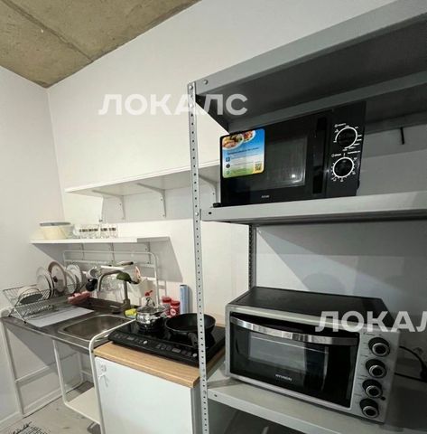 Сдается на длительный срок просторная квартира студия, общей площадью 35,5 м.кв. расположенная по адресу: г. Москва, Дмитровское шоссе, дом 107А, корпус 3. Квартира с интересной планировкой, разделена на две зоны: зона спальни и зона кухни-столовой с кондиционером, высота потолков 2,71 м. Санузел совместный 3.2 м.кв., весь в кафеле. В квартире имеется утепленная лоджия где организован рабочий кабинет. В квартире имеется вся необходимая для жизни мебель и бытовая техника. Метро рядом. Пять минут пешком до станции метро Яхромская. Развитая инфраструктура. Рядом с домом располагаются: магазины, фитнес, поликлиника, кафе, парк Ангарские пруды и т.д Удобный выезд на Дмитровское шоссе. Арендная плата 70 000 руб. в месяц + свет и вода по счетчикам, комиссия 50%. Залог можно разбить на 2-3 месяца.