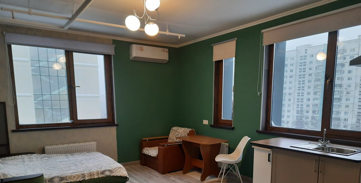 Студия с качественным евроремонтом, обставлена мебелью и всей необходимой бытовой техникой. Наличие кондиционера обеспечит комфортное проживание.