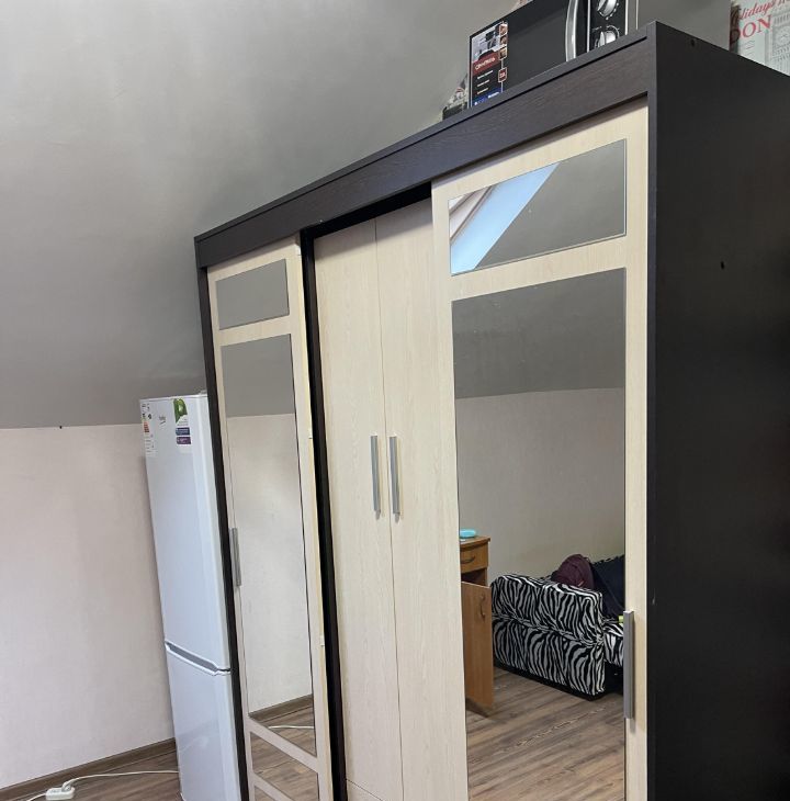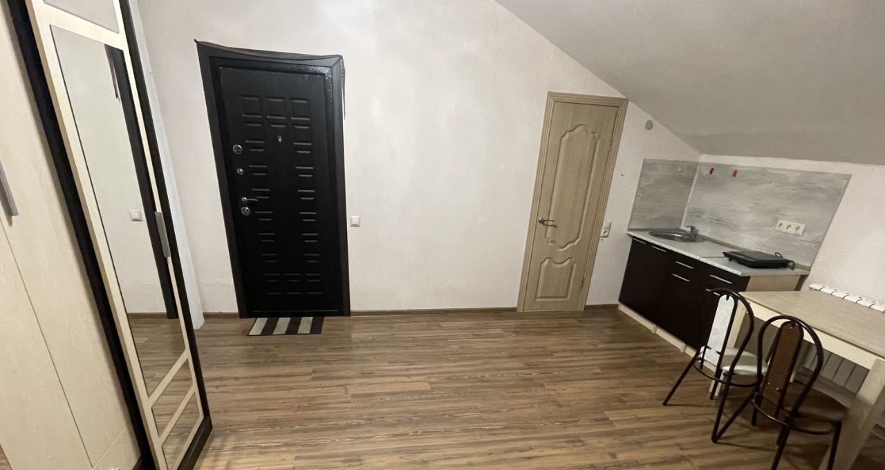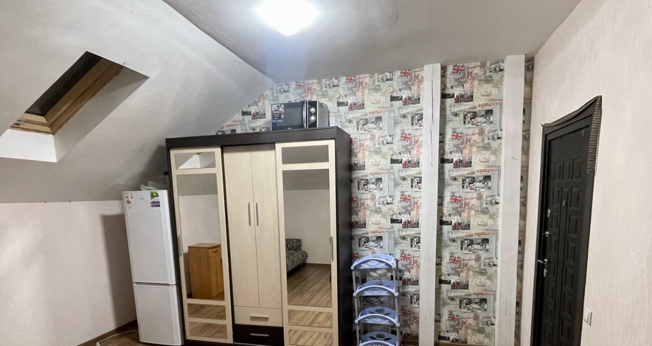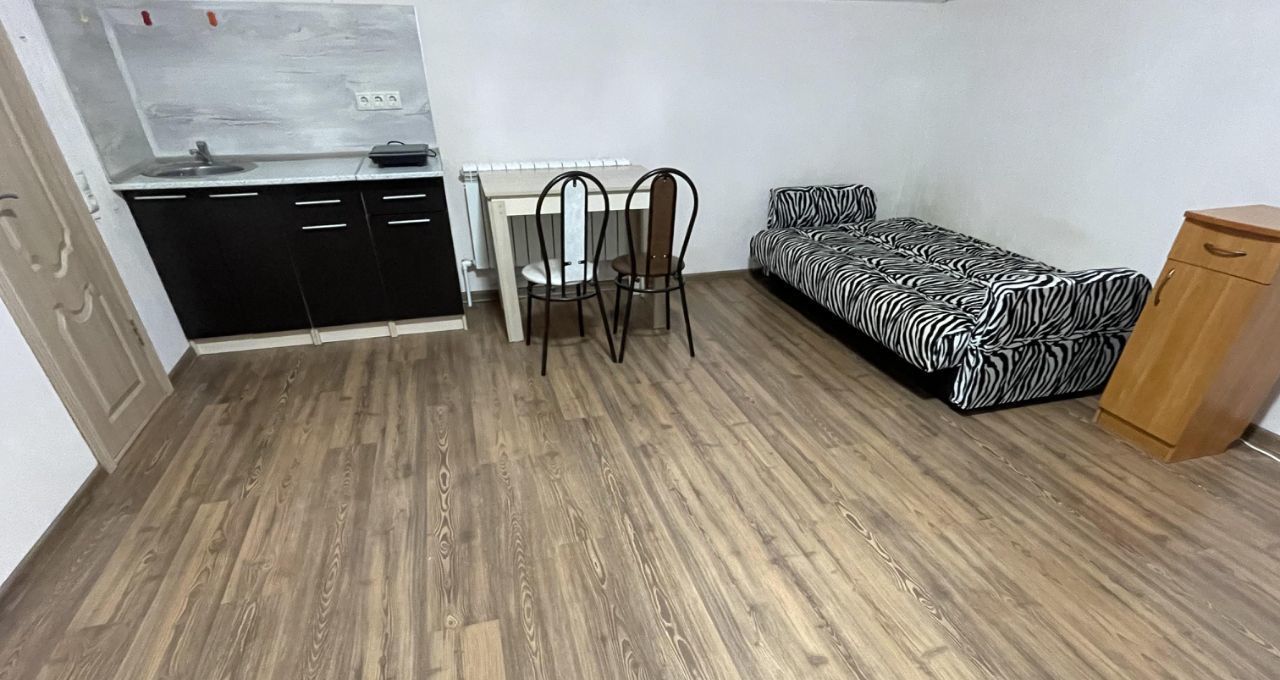 В студии есть все необходимое для проживания: мини кухня, электроплита, су, душкабина, большой холодильник, кровать, шкаф купе, стол, стул.