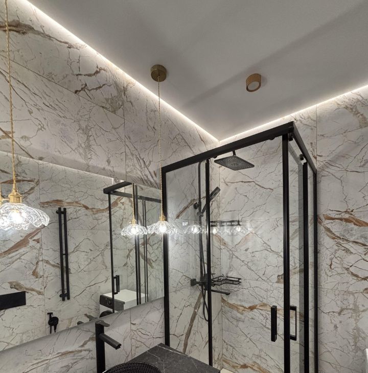 Просторный санузел с душевой кабиной.