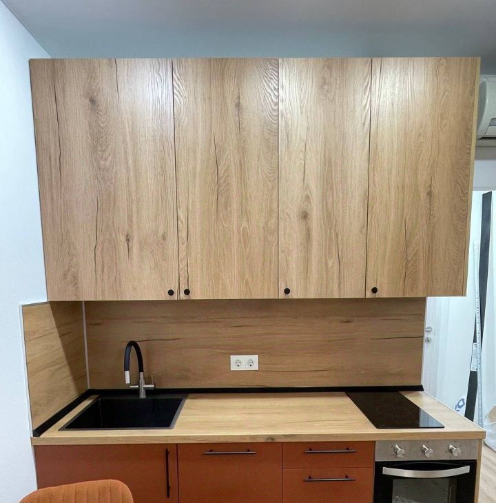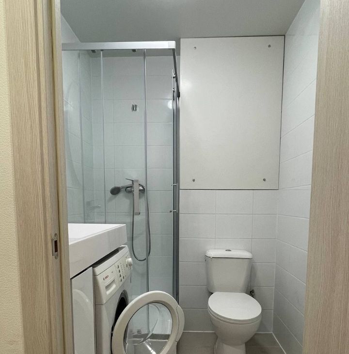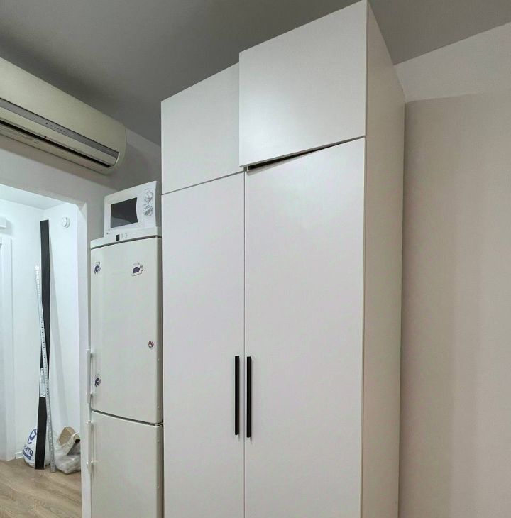 Бытoвая тeхника: кондиционер, варочная панель, духовой шкаф, посудомоечная машина, вытяжка, холодильник, стиральная машина, телевизор, микроволновая печь.