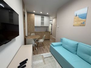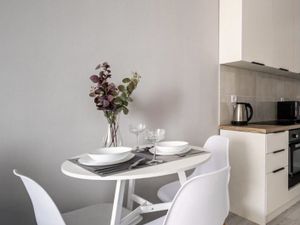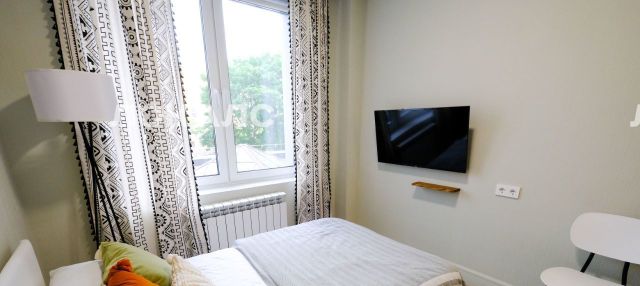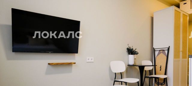 В квартире есть всё необходимое для комфортной жизни. Студия оборудована современной мебелью как в комнате, так и на кухне. В распоряжении арендаторов также холодильник, телевизор и стиральная машина. Санузел совмещённый, с душевой кабиной. Окна выходят на улицу, что обеспечивает хорошее естественное освещение.