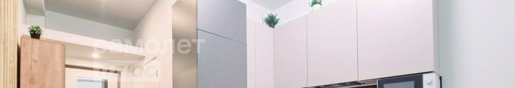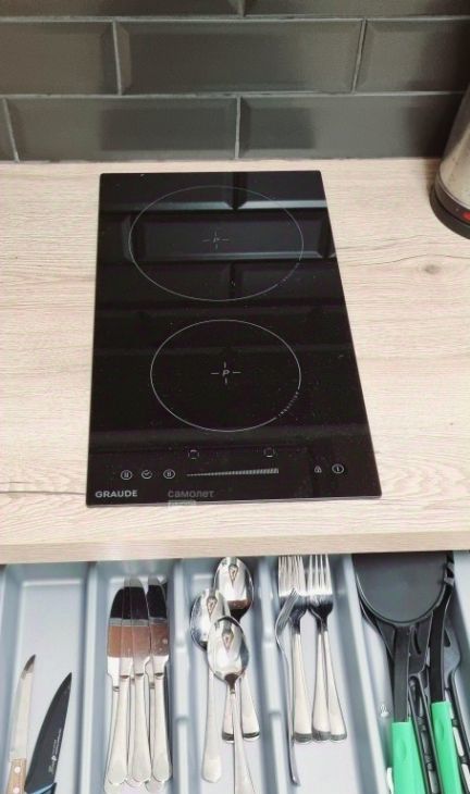 Кухня укомплектована всей необходимой техникой: холодильник, индукционная плита, чайник, микроволновка.
