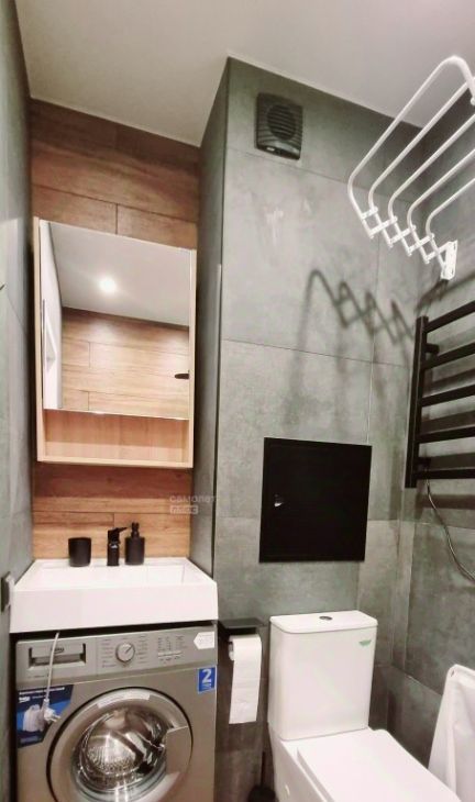 Совмещённый санузел, чистый и с ванной.