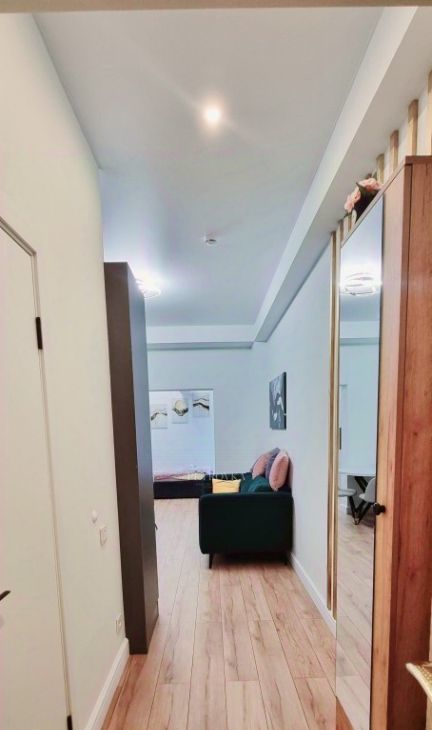 Апартаменты полностью меблированы и оснащен бытовой техникой. Просторная светлая комната с 2мя шкафами для гардероба и спальным местом.