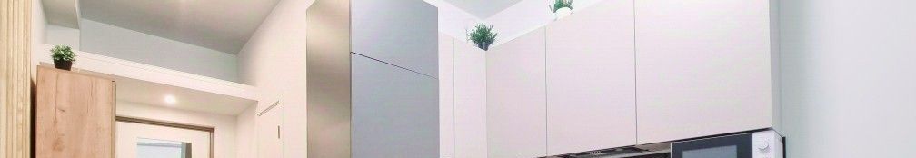 Кухня укомплектована всей необходимой техникой: холодильник, индукционная плита, чайник, микроволновка.