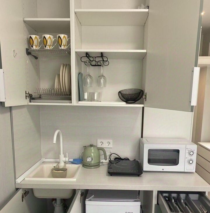 Студия сдаётся на срок от месяца до полугода. Оплачивать можно по неделям. Есть вся необходимая мебель, техника, постельное бельё, полотенца и посуда. Есть другие варианты студий на короткий и долгий срок. Пишите, звоните