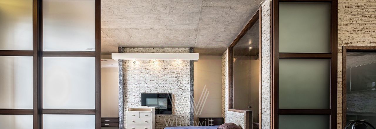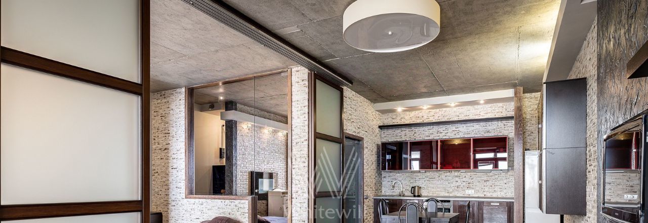 Видовая студия общей площадью 68 м² в комплексе "Факультетский" на 18-м этаже. Выполнена дизайнерская отделка в современном стиле. Стены оформлены кирпичной кладкой, многоуровневая подсветка позволяет создавать различные сценарии освещения. Спланирована кухня-гостиная с выходом на балкон, зона спальни, изолированная стеклянной перегородкой, ванная комната, прихожая. Квартира полностью меблирована и оборудована бытовой техникой. Панорамные окна наполняют пространство светом и открывают вид на город и Московский авиационный институт.