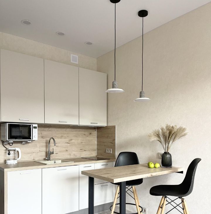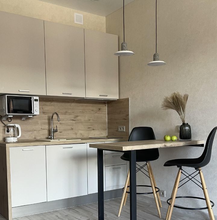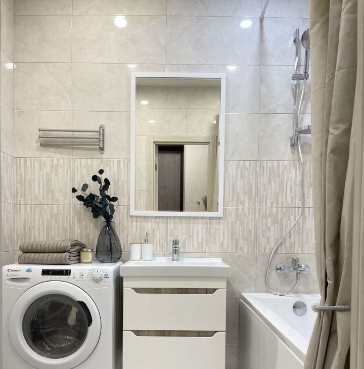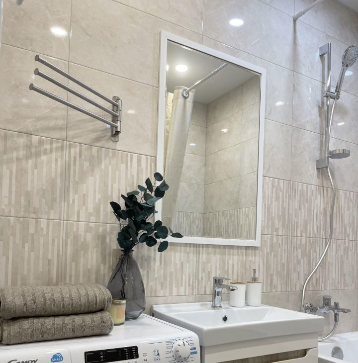 В квартире установлена вся необходимая мебель и техника - Smart TV, большой холодильник, посудомоечная машина, варочная поверхность, микроволновая печь, вытяжка, стирально-сушильная машина, чайник, пылесос, фильтр на воду.