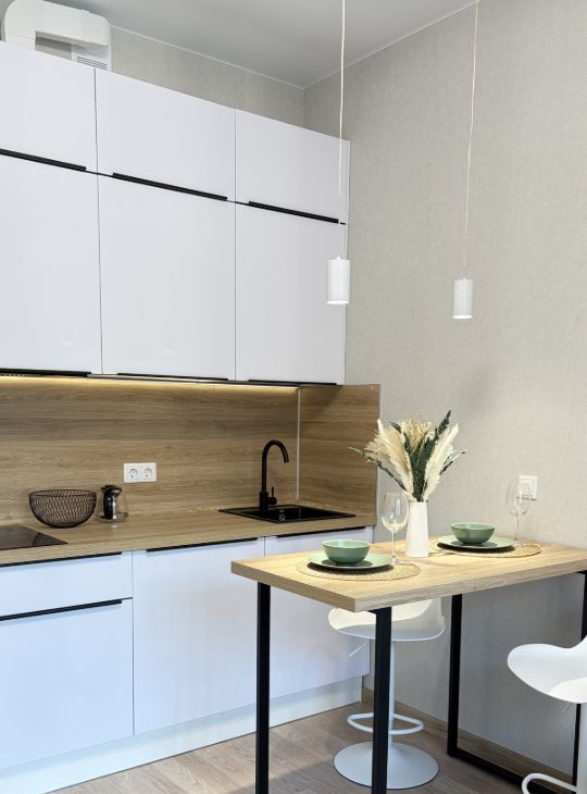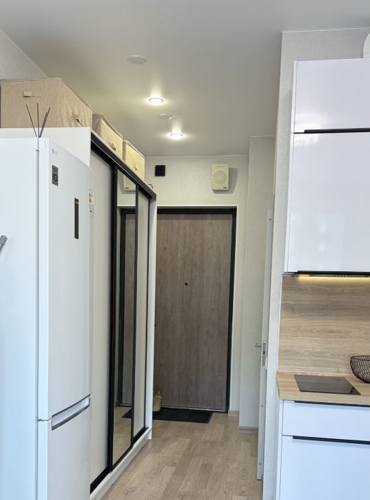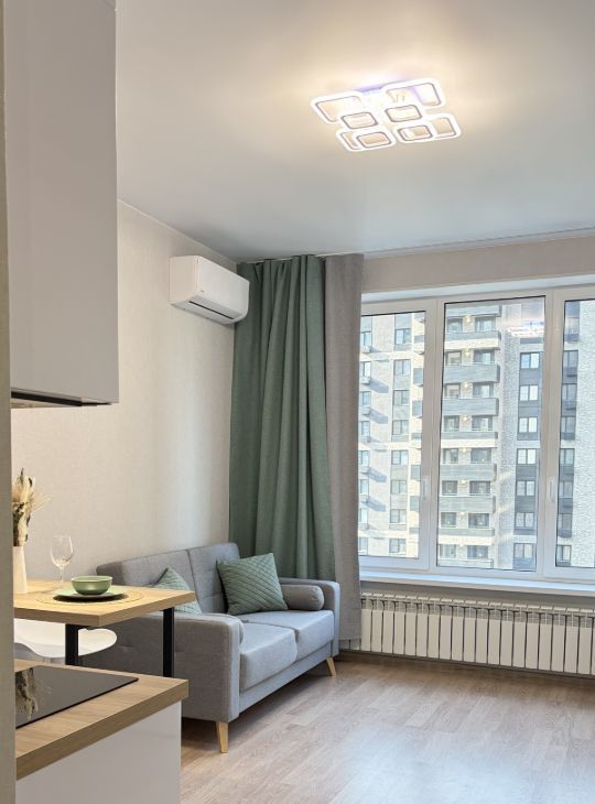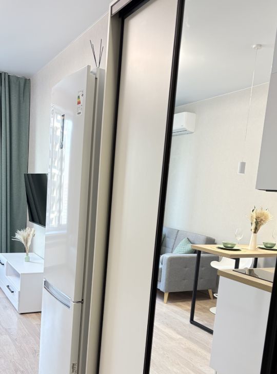 Сдается в аренду на длительный срок новая уютная студия, в которой есть все для комфортной жизни -диван-кровать, кухня с необходимой посудой , электроплита , дорогая техника ( бесшумный холодильник, стиральная машина Lg).