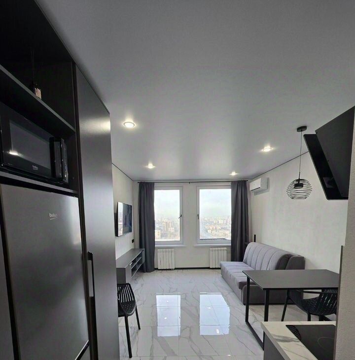 Сдаётся на длительный срок квартира-студия. Лучше этой квартиры в этом районе по такой приятной цене вы не найдете. Квартира для тех кто любит чистоту, комфорт и уют. В квартире имеется вся мебель и техника для вашего комфортного проживания. Развитая инфраструктура района Рядом с домом расположено все необходимое: