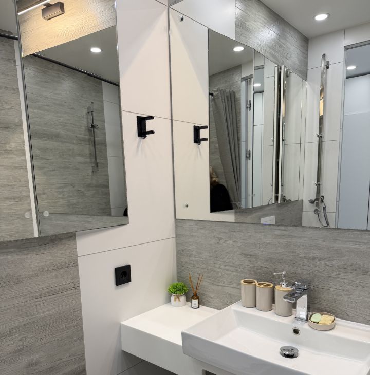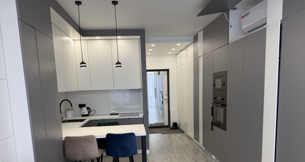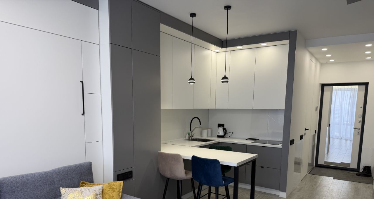Квартира с дизайнерским ремонтом, полностью готова для комфортного проживания. Функциональная планировка позволяет удобно разместить всю необходимую мебель и технику. Много удобных шкафов для хранения одежды и обуви. Есть рабочее место для работы на ПК. Установлен кондиционер. Спальное место: откидная кровать с ортопедическим матрасом, в дневное время можно использовать как диван для вашего отдыха. Совмещенный санузел оборудован современной сантехникой, установлен Аква стоп, который в случае необходимости перекрывает всю воду для вашей безопасности.