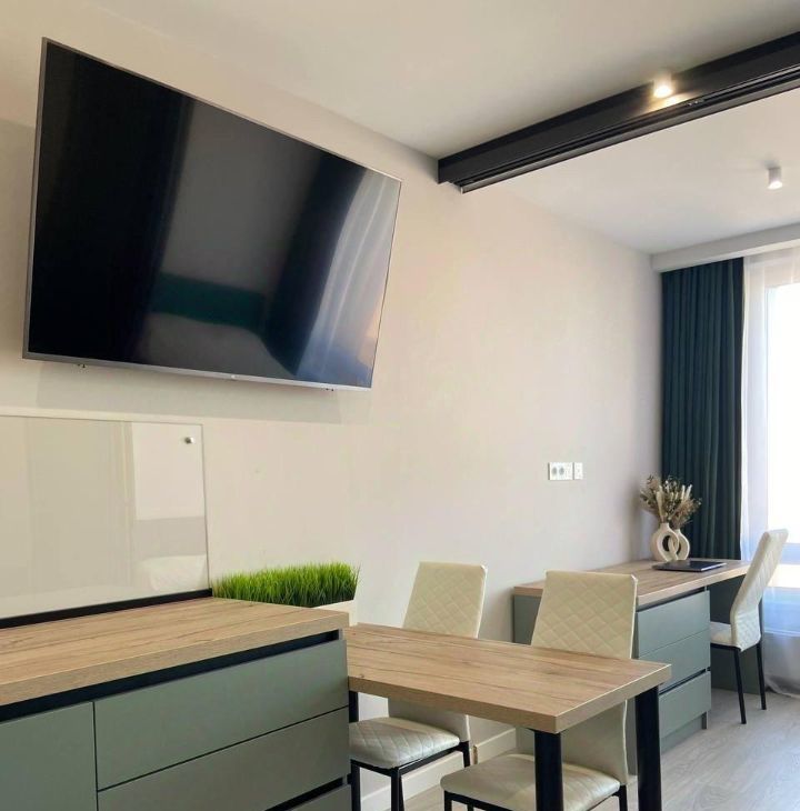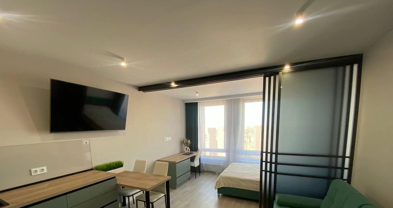 Эта однокомнатная студия подойдёт как активному арендатору-одиночке, так и паре, ведь здесь действительно проведена работа с пространством и есть всё необходимое.
