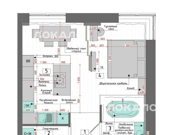 • Кухня: холодильник Smeg, варочная панель Smeg, духовой шкаф Bosch, посудомоечная машина Electrolux.