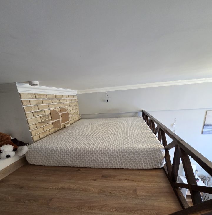 Площадь по первому этажу — 18.8 кв. м. Спальное место оборудовано на втором этаже.