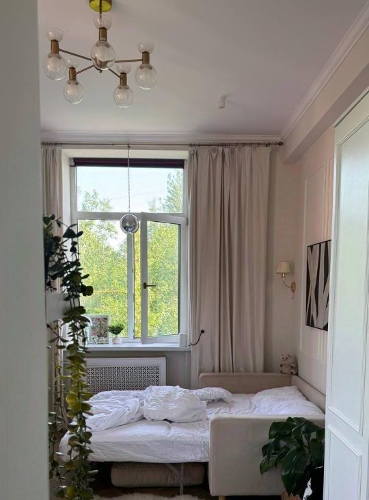 Два больших окна, много естественного света и открытый вид на город с красивыми закатами. Потолки 3 метра.