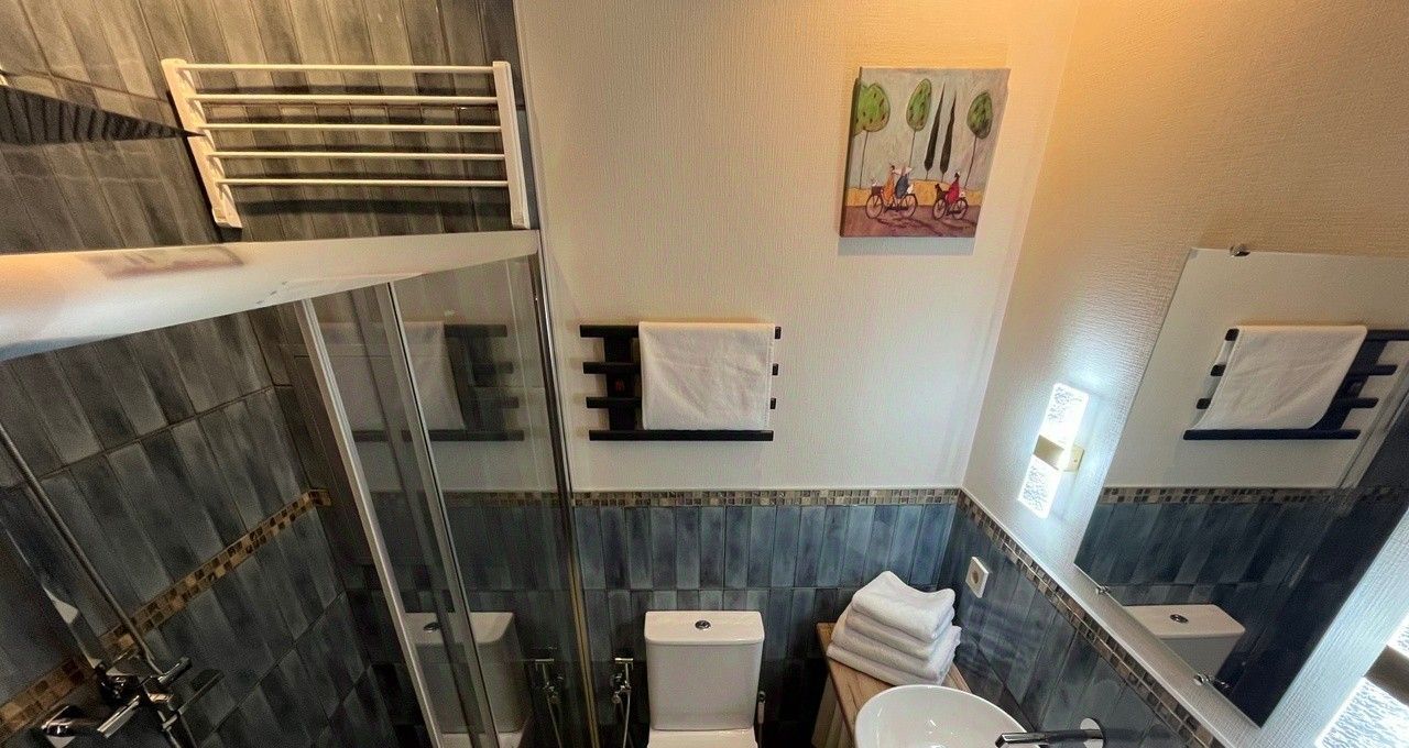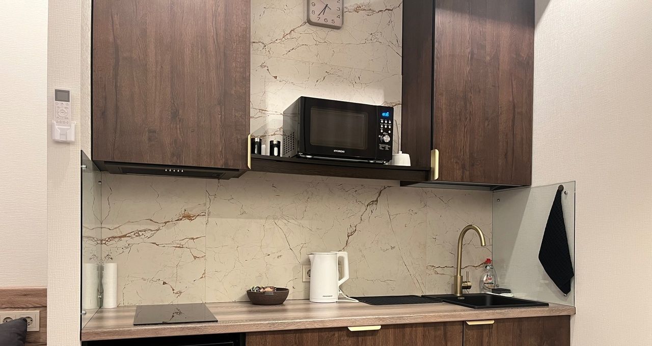 Квартира полностью укомплектована для комфортной жизни. Вы найдете здесь всю необходимую технику: кондиционер, стиральную и посудомоечную машины, холодильник, телевизор, а также высокоскоростной интернет. Меблировка включает как кухонный гарнитур, так и обстановку в жилой зоне. В совмещенном санузле есть и ванна, и душевая кабина. Коммунальные платежи включены в арендную ставку, что делает планирование бюджета максимально простым и предсказуемым.