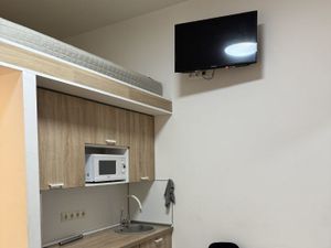 Сдается уютная студия в шикарной локации. в студии все новое и есть все для вашего комфортного проживания. Кухонная зона оборудована варочной панелью, микроволновкой, чайником, так же имеется большой холодильник.