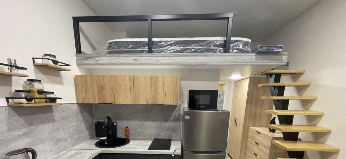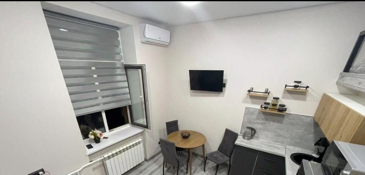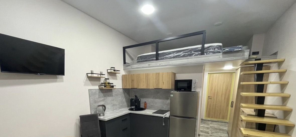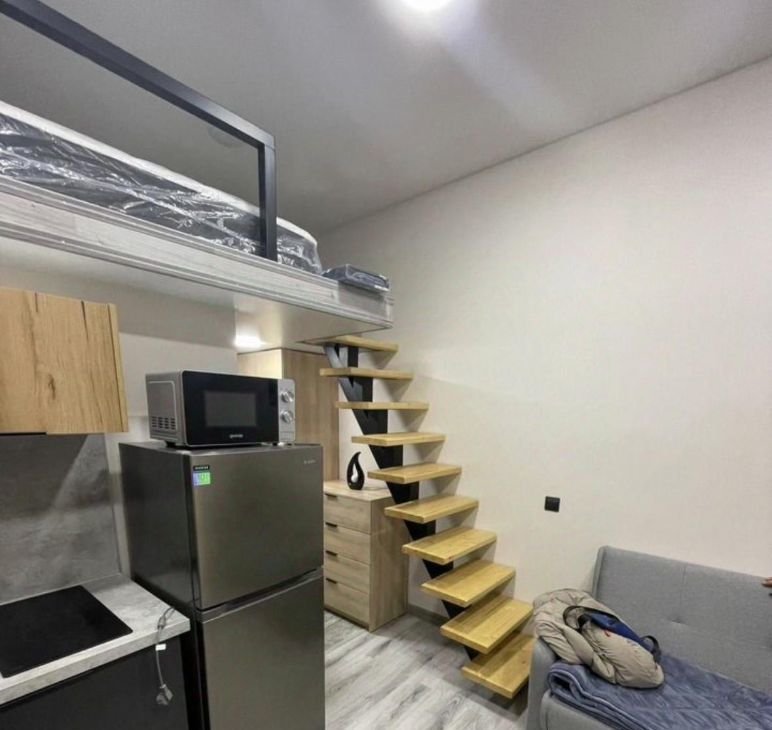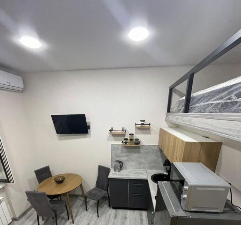 в студии все новое и есть все для вашего комфортного проживания. Кухонная зона оборудована варочной панелью, микроволновкой, чайником. Мягкий удобный двуспальный диван, кондиционер, телевизор.