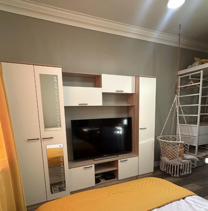 В квартире сделан современный ремонт, есть всё необходимое для комфортного проживания. В комнате установлена мебель, а на кухне вы найдёте холодильник, телевизор и стиральную машину. Ванная комната оборудована душевой кабиной.