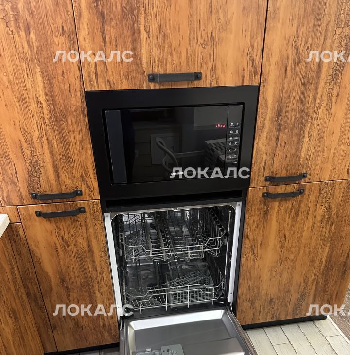 - Техника на кухне: индукционная плита (2 конфорки), встроенные посудомойка, микроволновка, холодильник