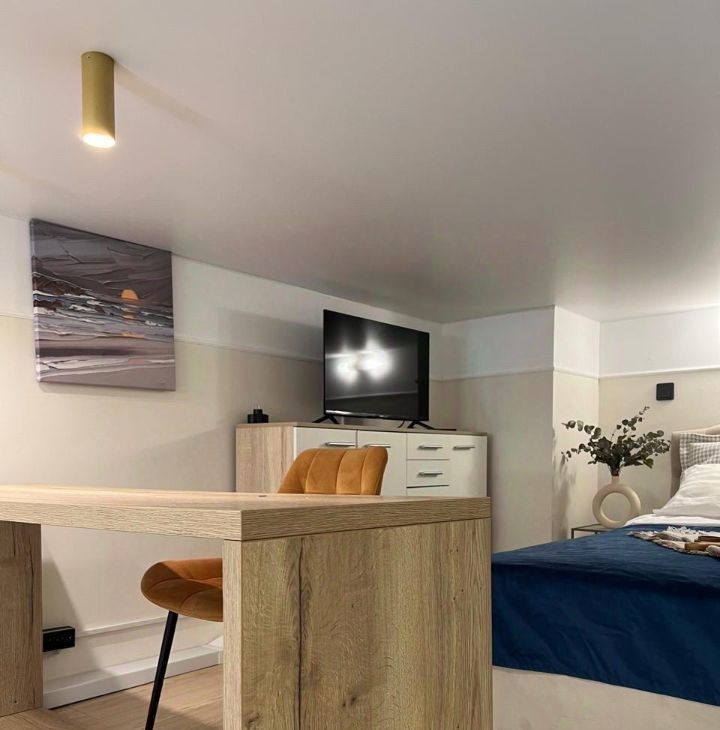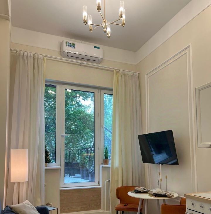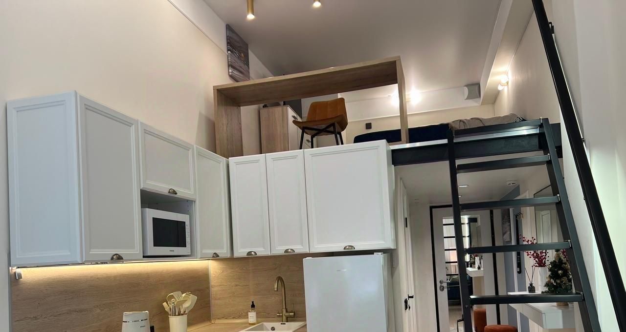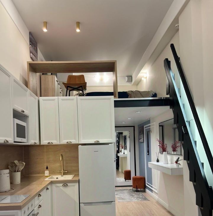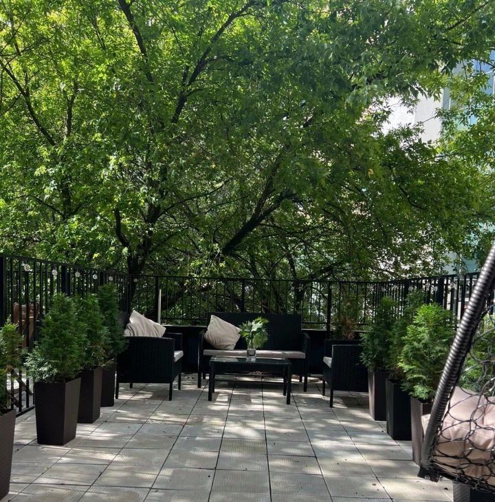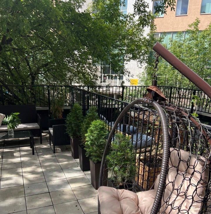 Дом расположен в экологически чистом районе, с благоустроенной придомовой территорией с хорошим озеленением. Охрана, презентабельная входная группа, лаунж зона и внутренний двор с детскими и спортивными площадками, а также зоной для игры в шахматы. В апартаментах выполнен дизайнерский ремонт, полностью укомплектованы мебелью и техникой, установлен кондиционер, есть все необходимое для проживания. Есть выход на свою террасу с местами для отдыха и освещением. Спальное место расположено на втором этаже