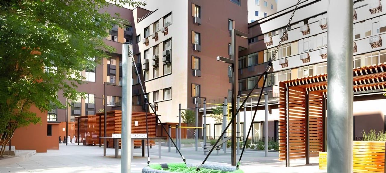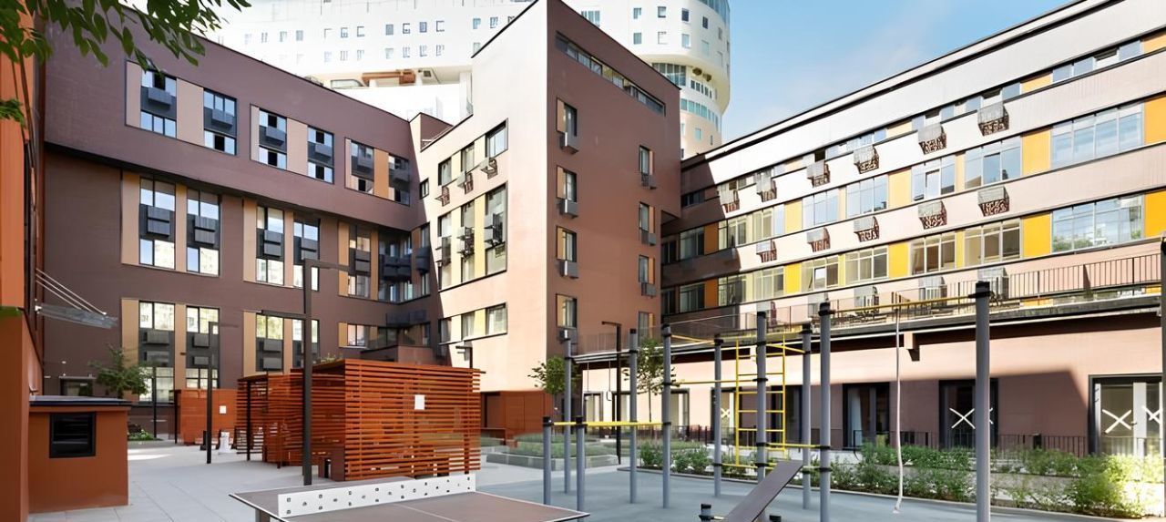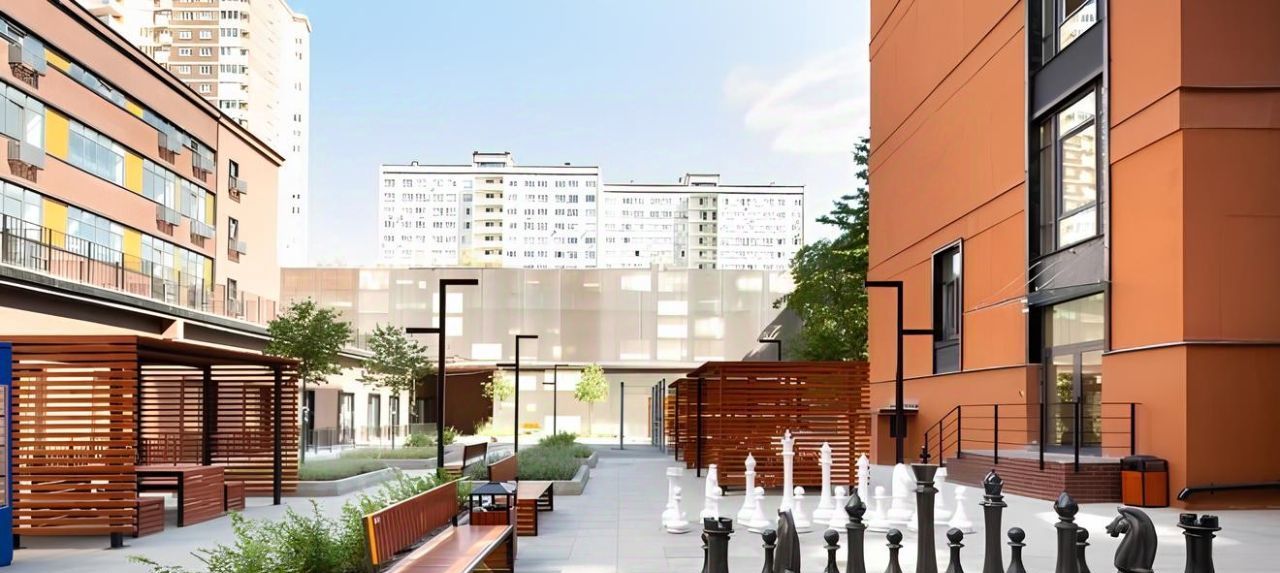 Лобби с дизайнерским ремонтом, места для отдыха и переговоров. Уютный внутренний двор с беседками, ростовые шахматы, качели, спортивный воркаут-комплекс.