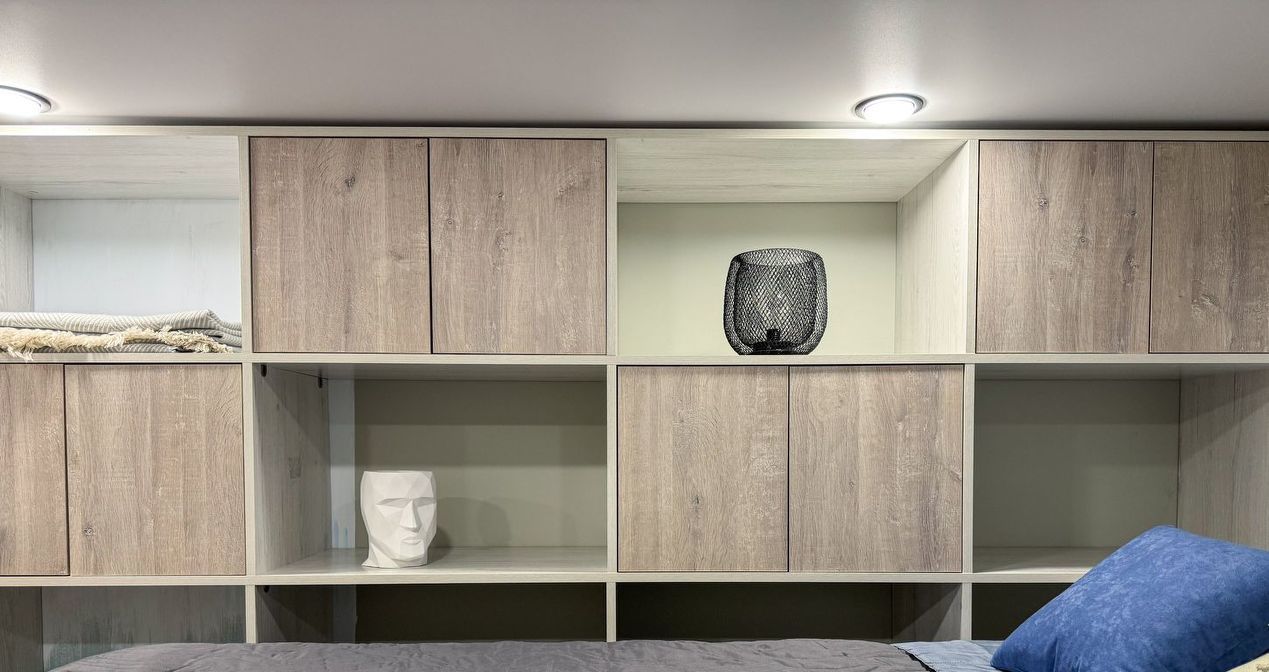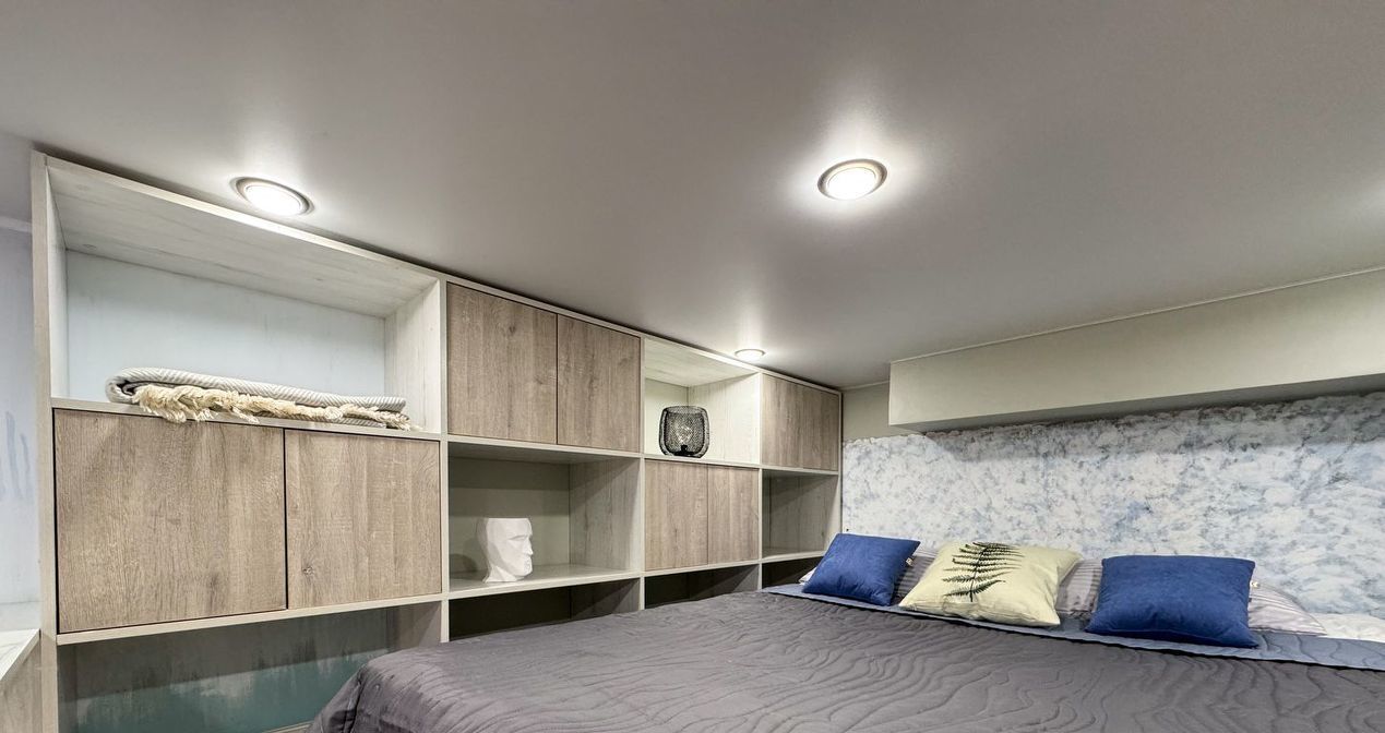 - Спальная зона с комфортабельной двуспальной кроватью (160x200 см).