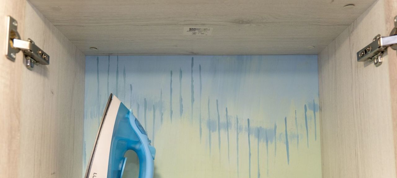 - Кухонная зона с полным набором техники: холодильник, электроплита, микроволновая печь, электрический чайник, посуда, столовые приборы.
