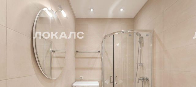 В квартире один совмещенный санузел с душевой кабиной, раковиной, зеркалом с подсветкой и стиральной машиной.