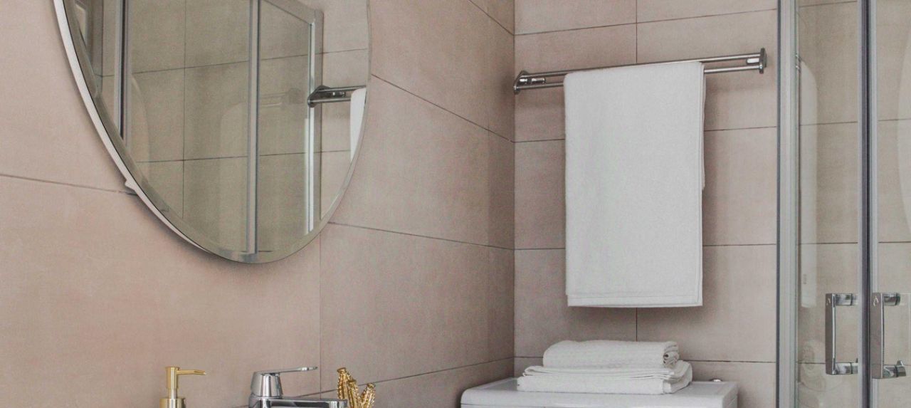 В квартире один совмещенный санузел с душевой кабиной, раковиной, зеркалом с подсветкой и стиральной машиной.